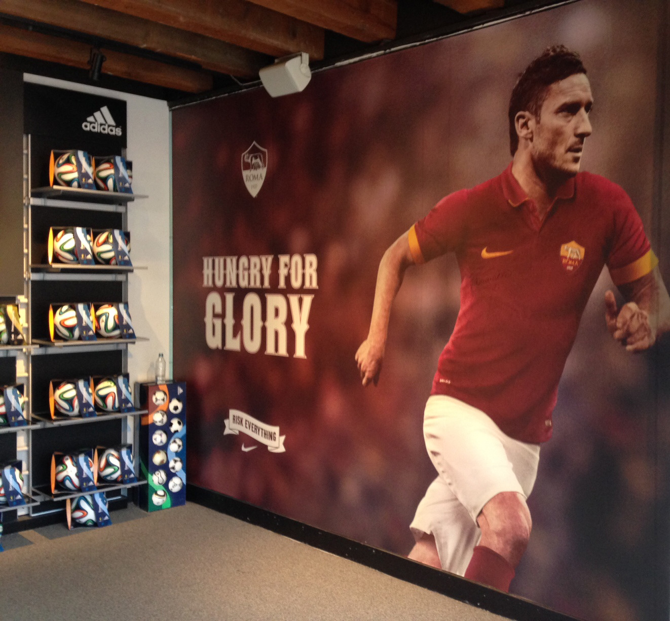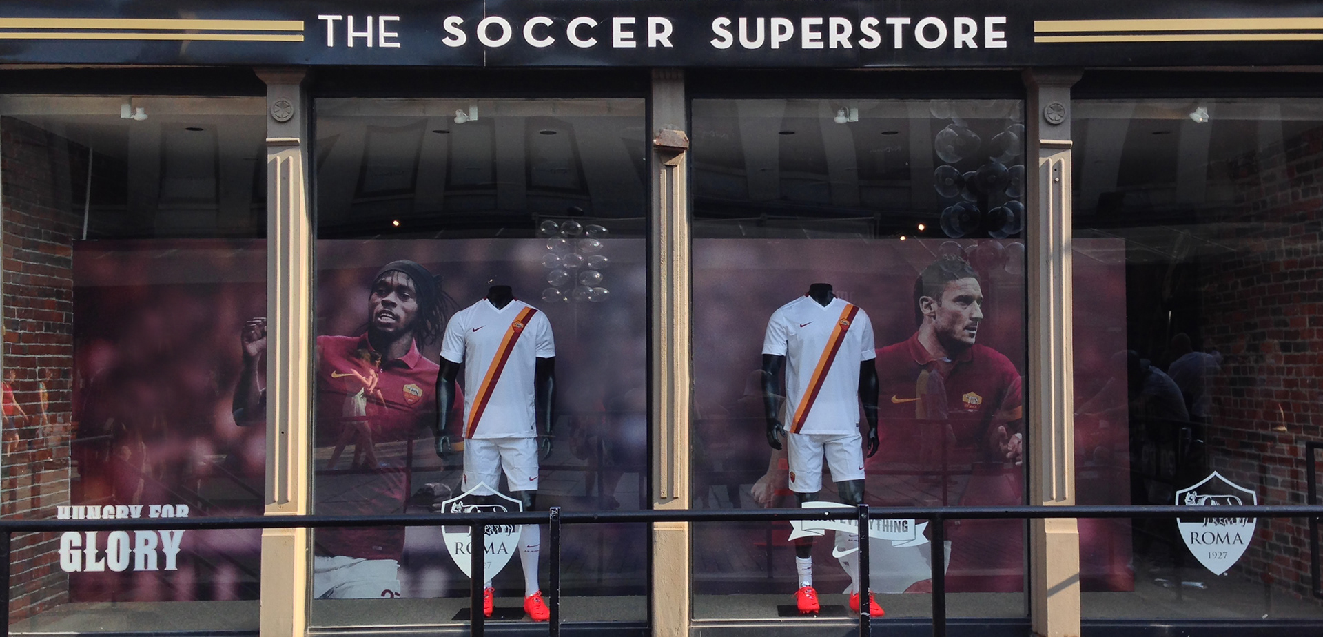 Window & in-store display at World Futbol Store in Faneuil Hall Marketplace / Boston